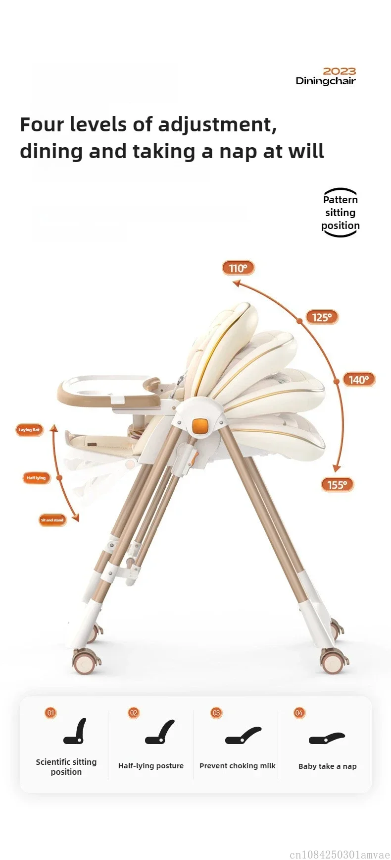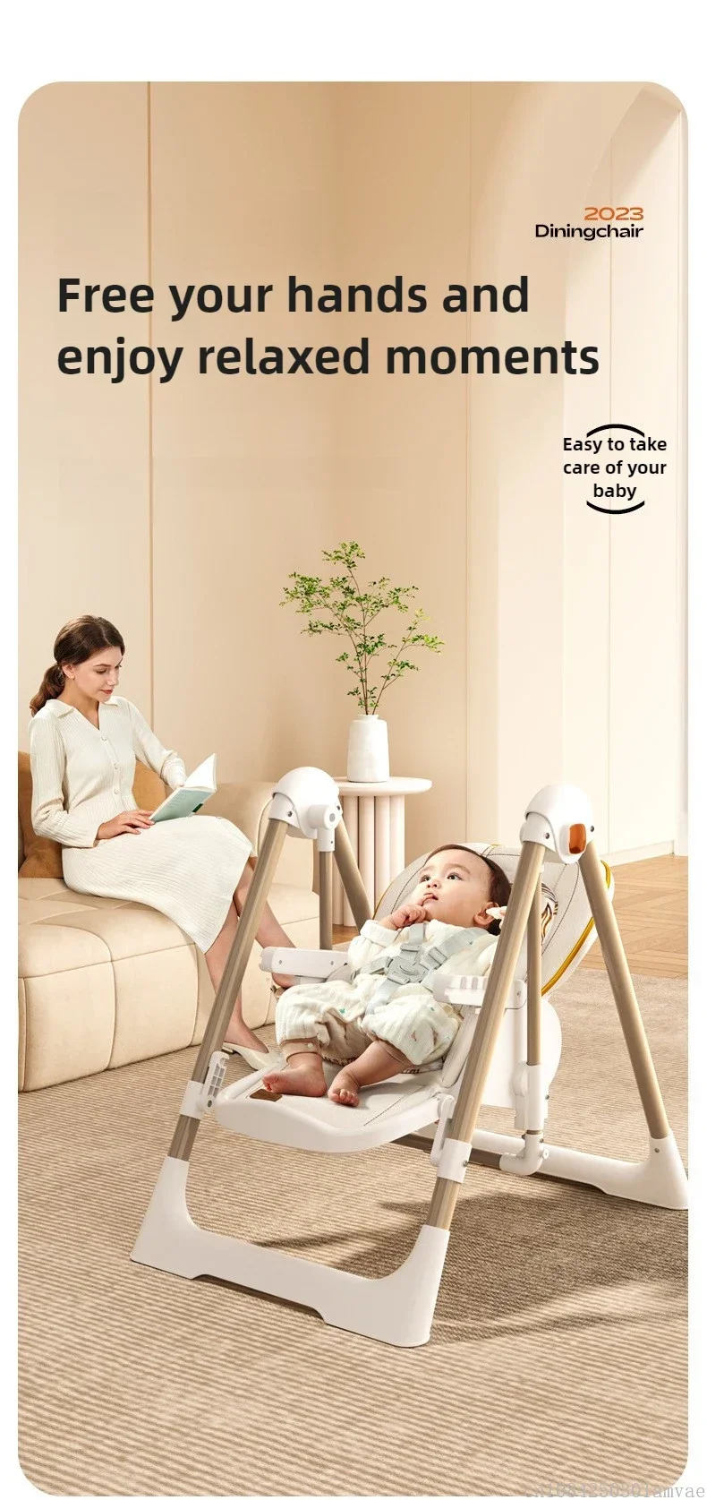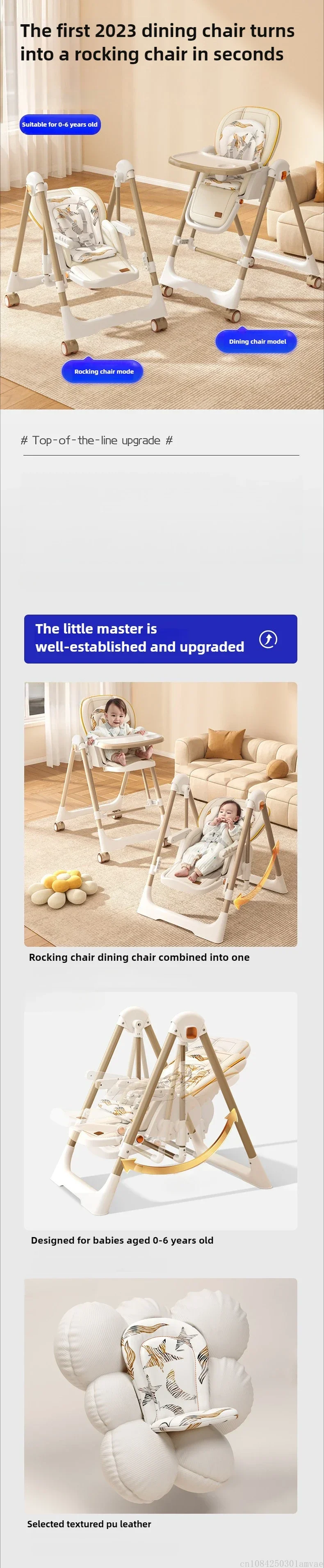Foldable Children's Dining Chair 2 in 1 Baby Rocking Swing Growing Children's Dining Chair Suitable for 0-6 Years Old EU Stock